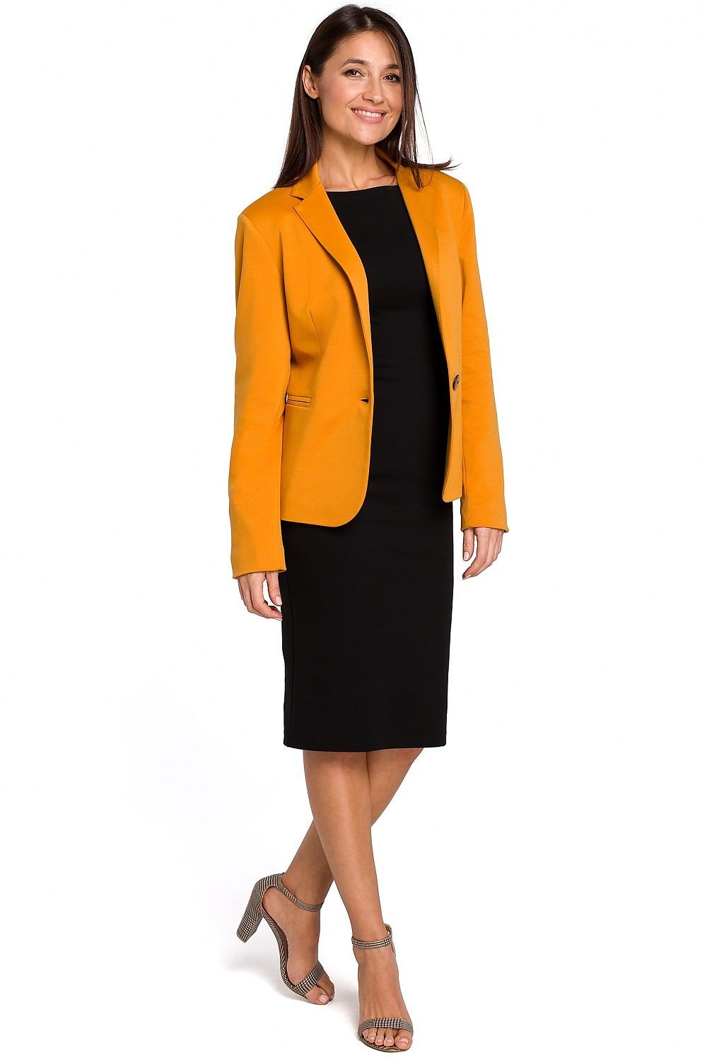 Feminine, slim-fit blazer made of soft knit fabric, finished with a dotted lining. It will go well with casual jeans as well as with an elegant shirt for the office.