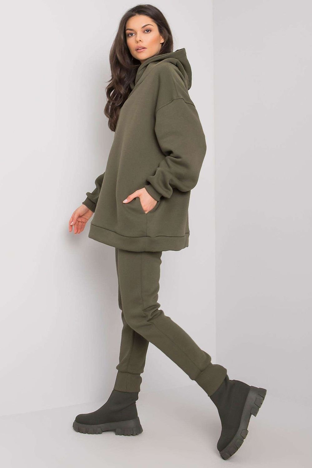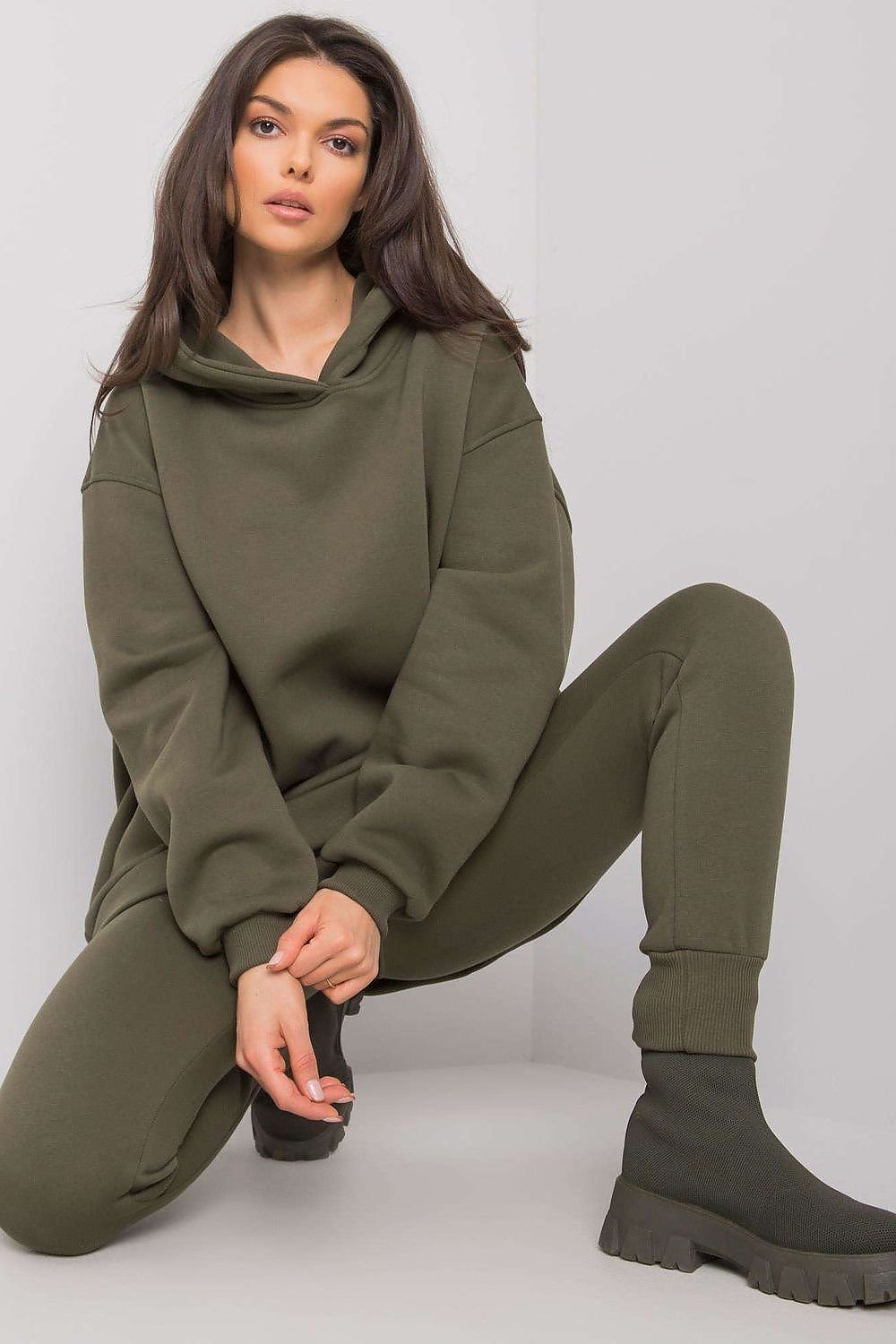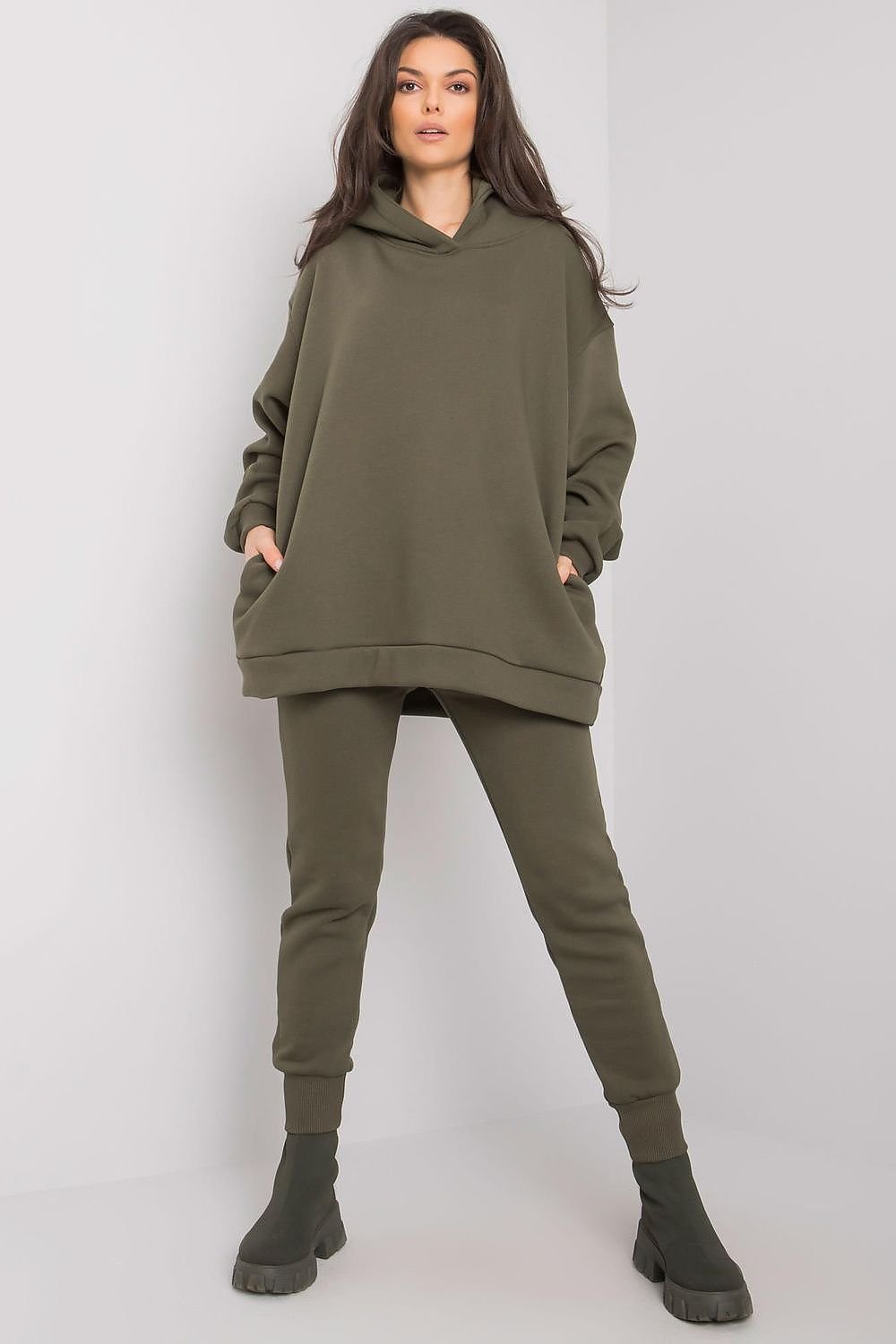 A set consisting of a sweatshirt and sweatpants. Sweatshirt put on over the head, with a hood and pockets. Straight cut trousers.