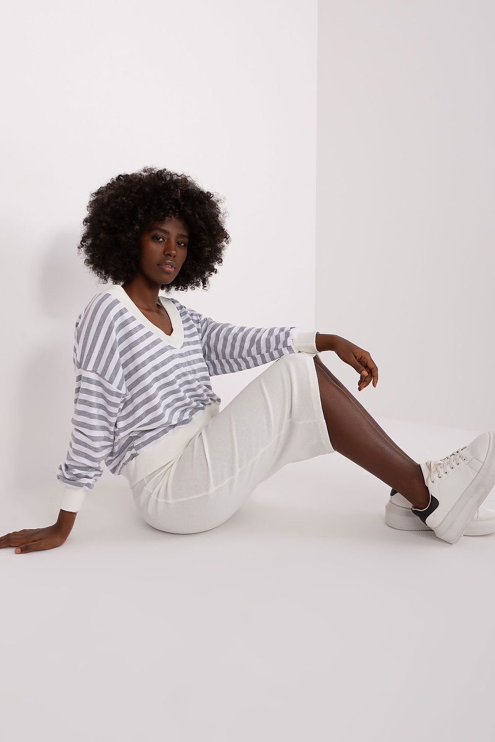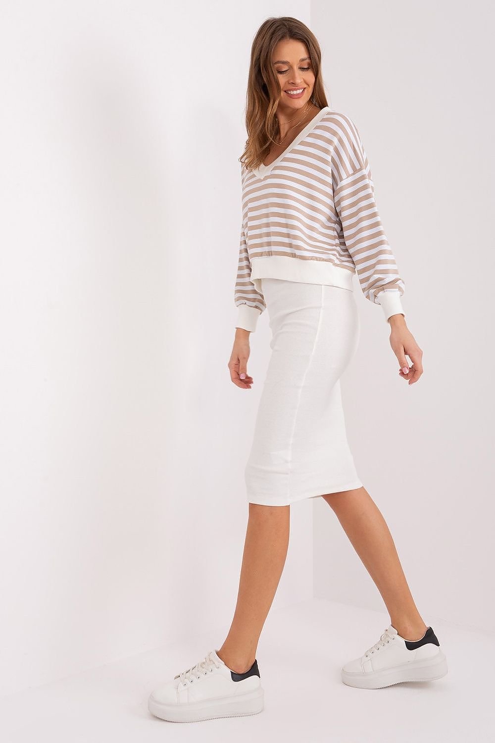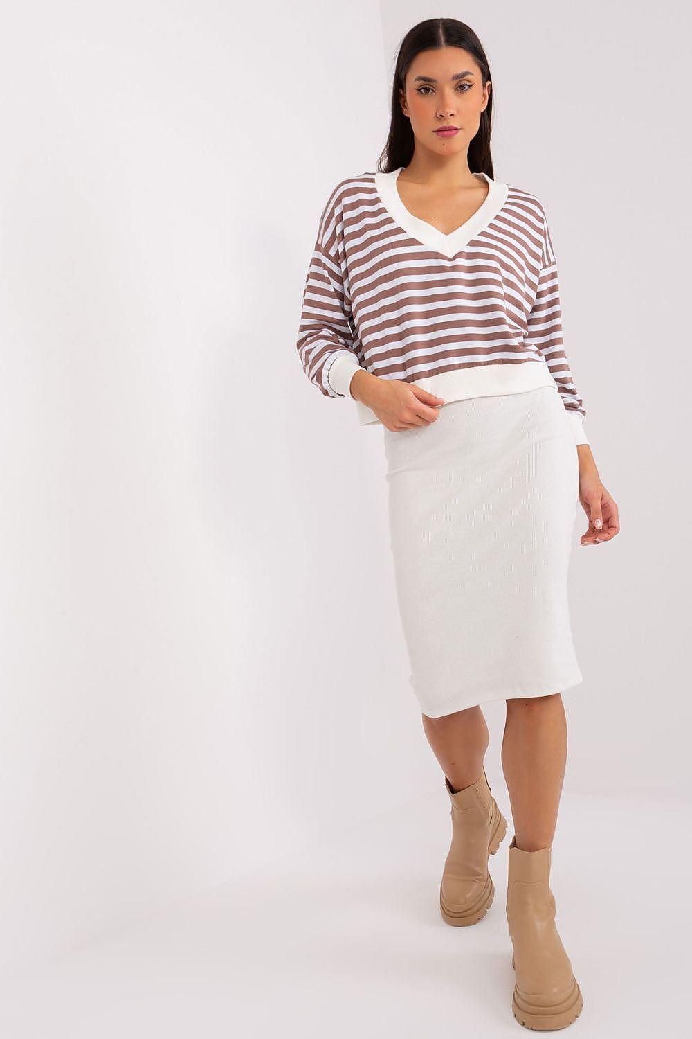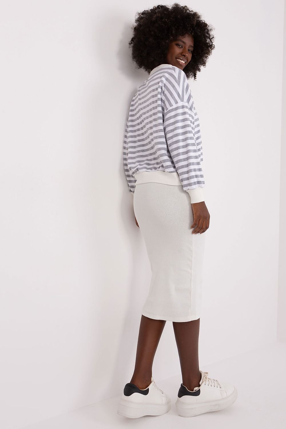 The blouse and dress set is a perfect combination of comfort and style, ideal for everyday situations where you want to stay casual and look fashionable at the same time. The dress made of ribbed material adds originality to the set, while the striped blouse gives it lightness and freshness. The dominant material in the set is comfortable and soft cotton, which guarantees pleasure in wearing and adequate breathability. Both the dress and the blouse are kept in a plain pattern, which makes them versatile and easy to combine with other items of clothing. The midi length strapless dress gives the set an elegant look, while remaining a comfortable choice for everyday wear. The heart neckline and round neckline at the dress add subtle femininity, creating a harmonious and balanced composition. A long-sleeve blouse with a heart neckline is a practical addition to the set, allowing you to enjoy casual style on both warmer and cooler days. These elements form a harmonious duo, while maintaining freedom of movement and a pleasant, everyday character. This complete set perfectly combines comfort with fashionable design, making it an ideal choice for everyday meetings, shopping or relaxing walks. The casual style and various elements of the set make it versatile, allowing you to adapt to different circumstances.