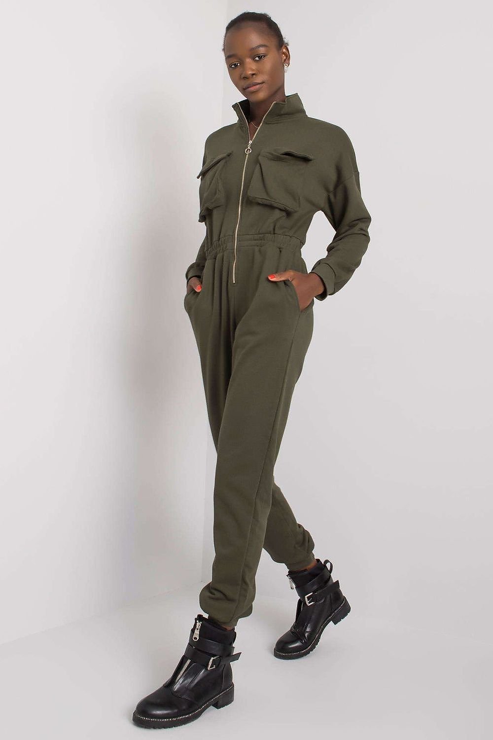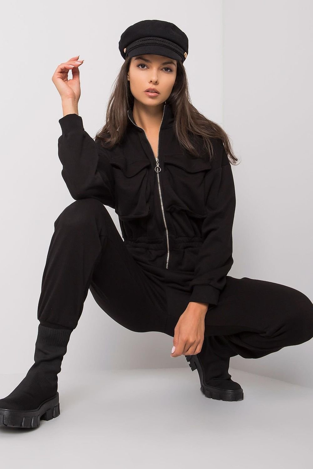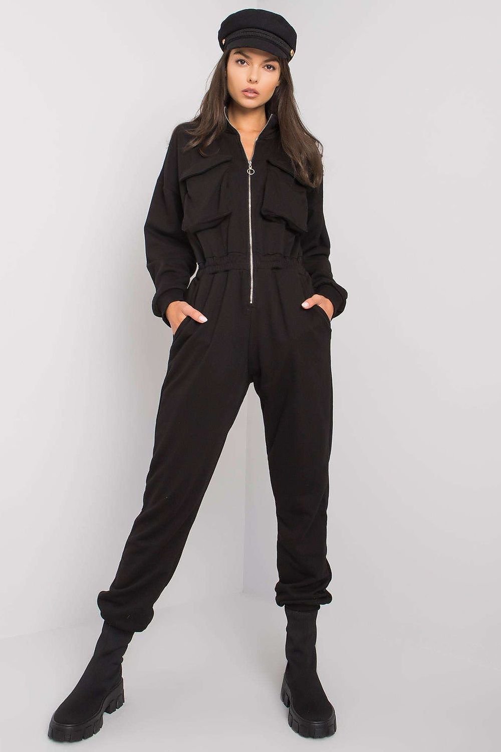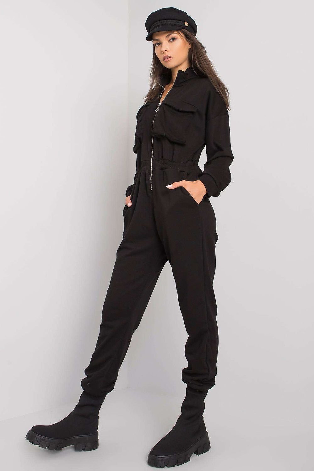 Black cotton zipped jumpsuit. Perfect for everyday wear.
