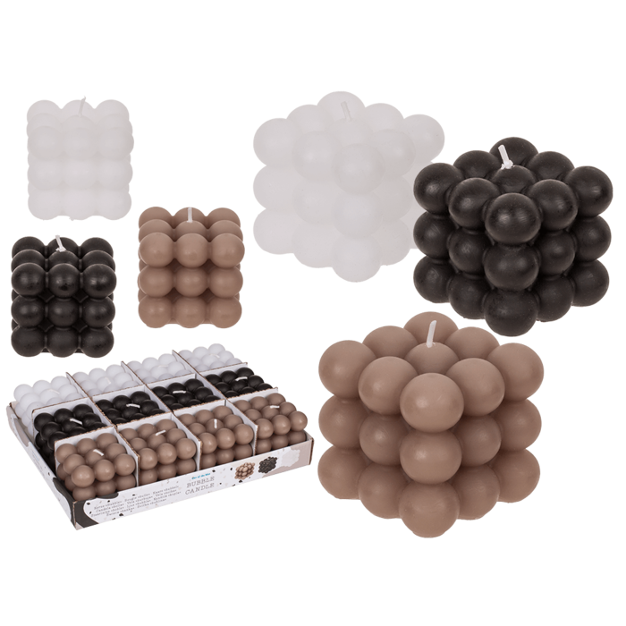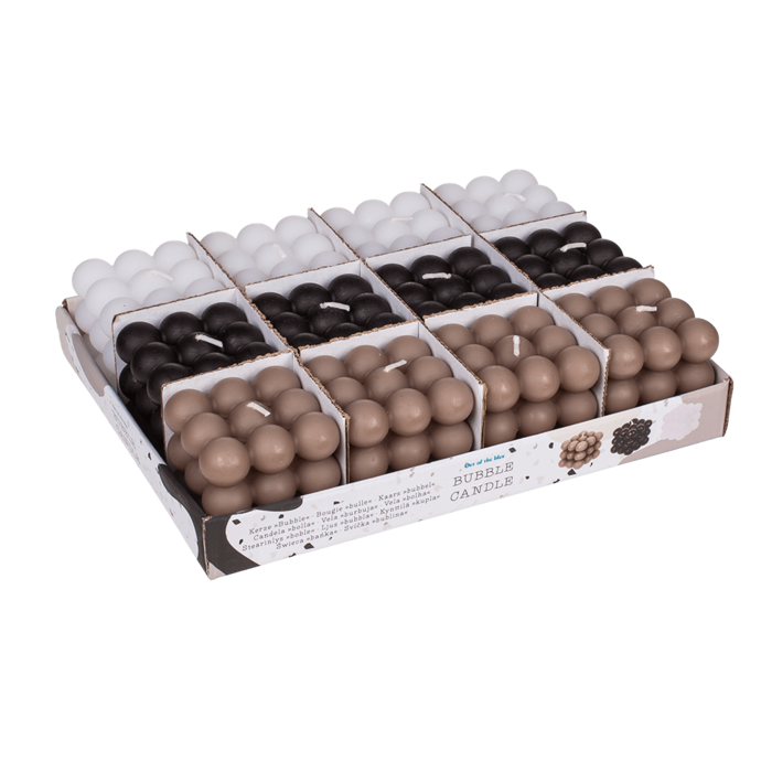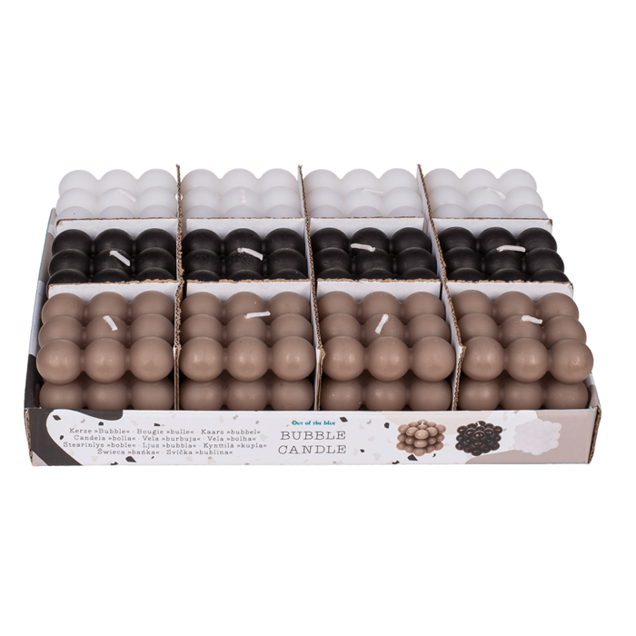 Ljus, Bubble, ca. 6 x 5,5 cm, 3 färger blandade, 12 st per PDQ ljus /Bubbla /Höst /Blandade färger /Dekorativ /Heminredning /Säsongsbetonad /Presentidé /Avkoppling /Mysig atmosfär