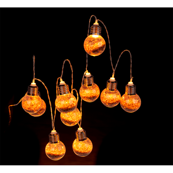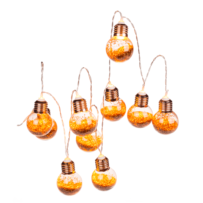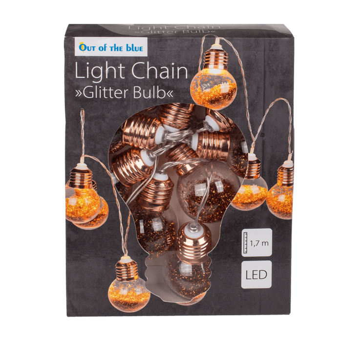 Ljuskedja, Glitter Bulbs, med 10 LED, ca. 8 cm, L: ca 1, 7 m, för 2 mignonbatterier (AA), i plastlåda, endast för inomhusbruk - Ljuskedjan med glitterlampor är en fantastisk, indirekt belysning och skapar en ganska ljus accent i ditt vardagsrum. Ljuskedjan kan användas oberoende av tillgång till ett uttag, eftersom den drivs med 2 batterier, som inte ingår i leveransen. Ljuskedjan slås på och av i batterifacket och är endast lämplig för inomhusbruk. Även när de är avstängda är älvlamporna ett ganska dekorativt element. Lätt kedja