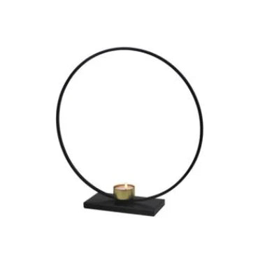 Stilren ljusstake i metall. Svart med guldfärgad ljuskopp passande för värmeljus.